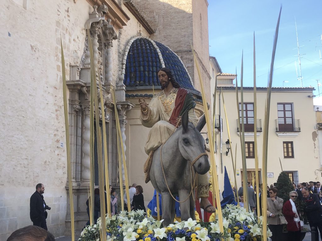 El sonido de las cornetas y tambores han llenado esta mañana las calles de Torrent en el Domingo de Ramos; una celebración donde participan las hermandades de Torrent y la Reina del Encuentro, Maria Silla Mora. La mañana se ha iniciado con la concentración de todas las hermandades y la bendición de las palmas, a las 9 h en la parroquia de la Asunción. A continuación se han celebrado dos procesiones, con dos itinerarios diferentes,hasta llegar a la parroquia del Buen Consejo.