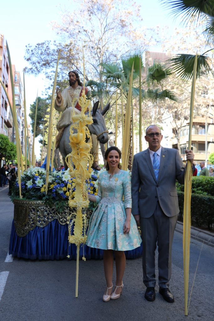 Ayer, con la presencia de todas las hermandades, la Reina del Encuentro y Ángel de Resurrección, Gemma Torrent; el alcalde Jesús Ros; el concejal del Área de Cultura, Alfred Costa, y varios miembros de la corporación tuvo lugar, en la parroquia de San José, la tradicional bendición de las palmas. Seguidamente, todas las hermandades iniciaron la procesión hacia la parroquia de Montsió. El paso de la Entrada Triunfal, llevado por la hermandad de la Santa Faz y acompañado por la reina del Encuentro y por sus camareras, Claudia Ros y Blanca Sahuquillo, cerró uno de los dos itinerarios en que se dividía la procesión. El otro itinerario estaba presidido por los hermanos mayores de todas las hermandades.