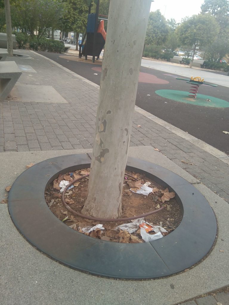 Además, afirman que ‘esta basura no se acumula en un par de días, hace varias semanas que por allí no pasa nadie a limpiar. También hace falta un buen baldeo. Deplorable el estado en que los niños pueden jugar’.