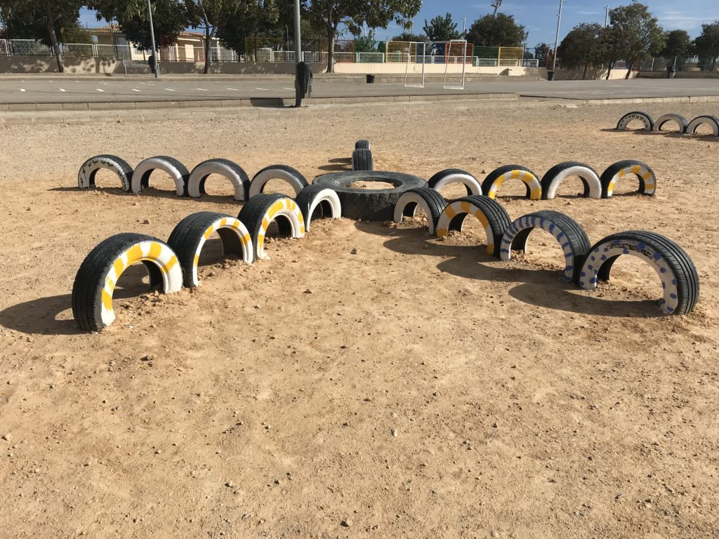 Además de los materiales típicos como pelotas, cuerdas o gomas, la comisión de patio del Ceip San Juan Bautista ha instalado espacios novedosos.