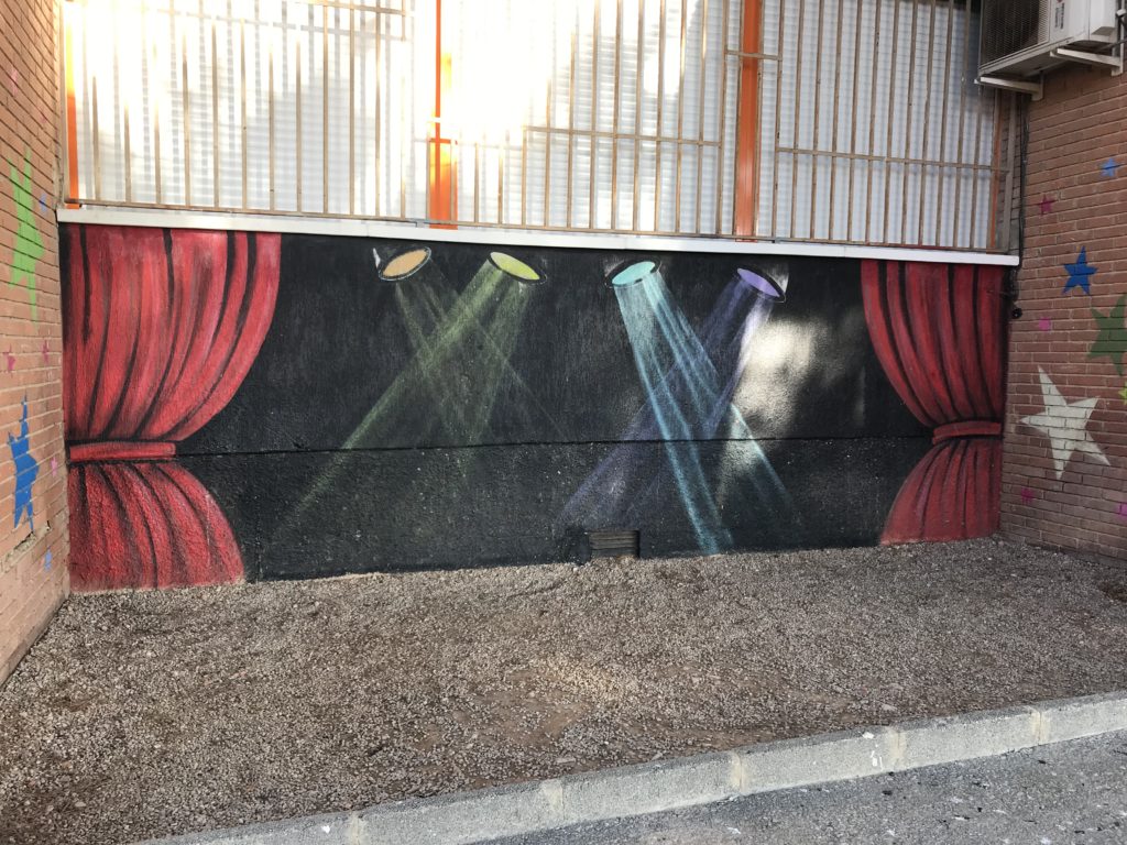 4. Dos murales para potenciar el juego simbólico. Son una Estación de gasolina y un teatro.