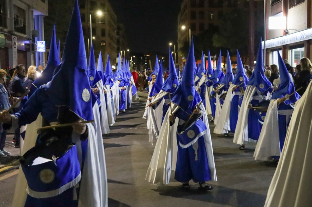 A esa misma hora se celebró el vía crucis de la hermandad del Descendimiento de la Cruz, el cual finalizó en la parroquia de San Luís Bertrán, junto con otro de los actos más destacados de la noche: el traslado y representación viviente de las Tres Caídas de Jesús en el Camino del Calvario, en el que participó la hermandad del Divino Costado de Cristo en compañía de GTI Grup de Teatre. Después llegó el traslado penitencial del paso de les Set Paraules i el Crist del Perdó, protagonizado por ambas hermandades y con un recorrido que culminó en la Casa Museo de la Semana Santa. Como colofón, a media noche se celebraron el traslado de oración y penitencia del Paso de la Oración del Huerto, popularmente conocida como la procesión de las cadenas, y el traslado del Paso del Prendimiento de Jesús, en el que la hermandad fue acompañada por la Schola Gregoriana Laetentur.