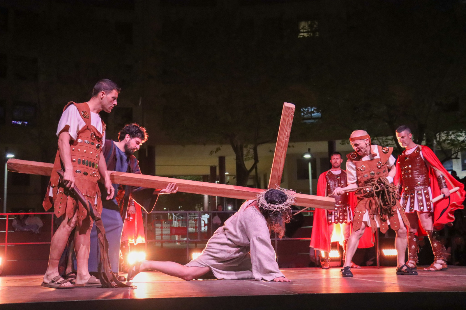 A esa misma hora se celebró el vía crucis de la hermandad del Descendimiento de la Cruz, el cual finalizó en la parroquia de San Luís Bertrán, junto con otro de los actos más destacados de la noche: el traslado y representación viviente de las Tres Caídas de Jesús en el Camino del Calvario, en el que participó la hermandad del Divino Costado de Cristo en compañía de GTI Grup de Teatre. Después llegó el traslado penitencial del paso de les Set Paraules i el Crist del Perdó, protagonizado por ambas hermandades y con un recorrido que culminó en la Casa Museo de la Semana Santa. Como colofón, a media noche se celebraron el traslado de oración y penitencia del Paso de la Oración del Huerto, popularmente conocida como la procesión de las cadenas, y el traslado del Paso del Prendimiento de Jesús, en el que la hermandad fue acompañada por la Schola Gregoriana Laetentur.