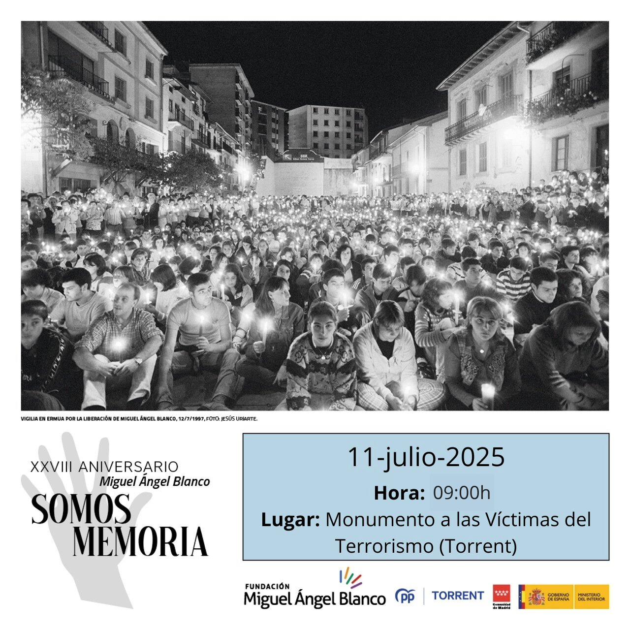 El Partido Popular de Torrent, otro año más, rendirá homenaje a la figura de Miguel Ángel Blanco, el concejal popular de Ermua asesinado por la banda terrorista ETA hace 28 años.