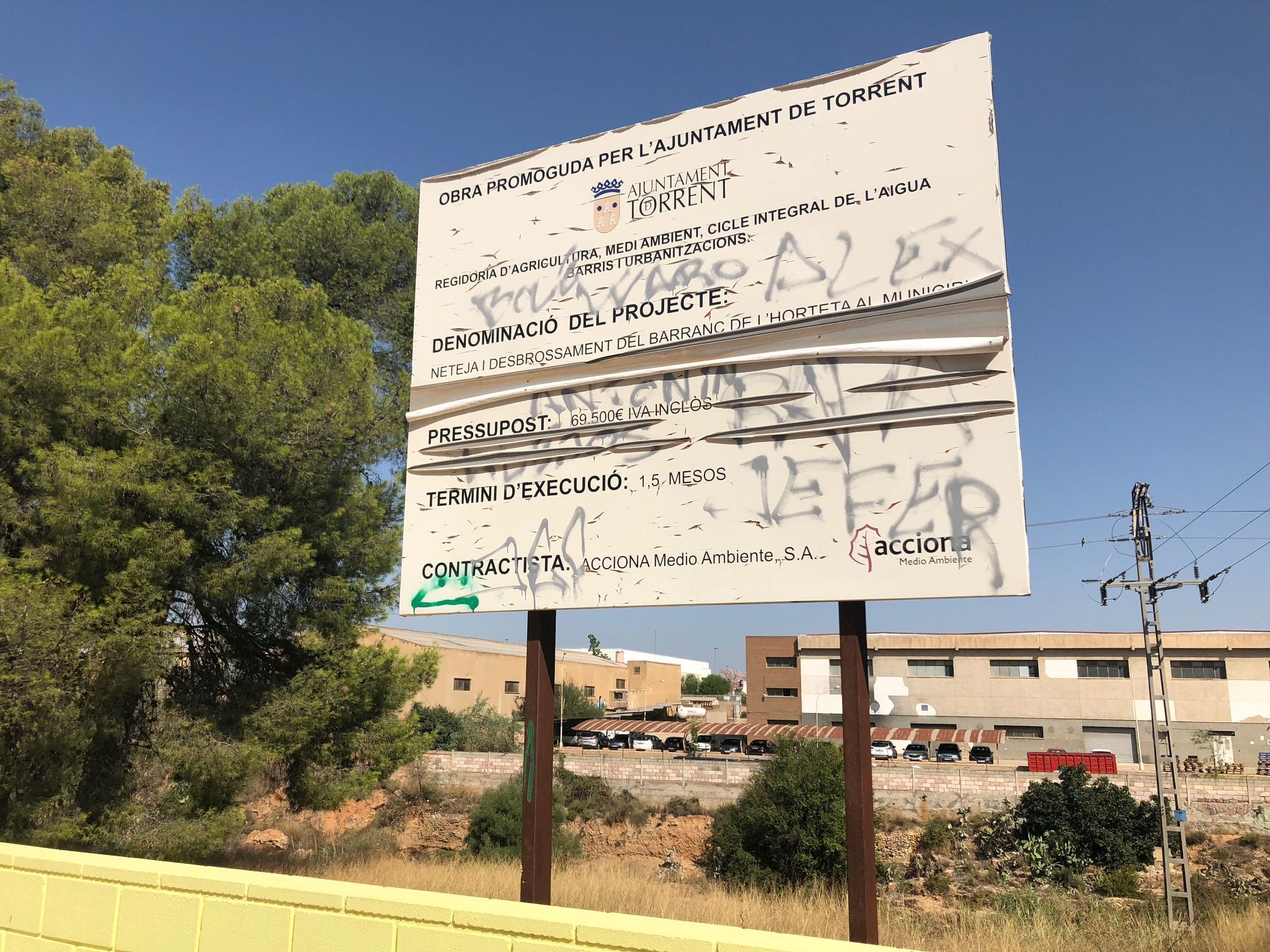 “cumpliendo con la demanda de los vecinos de Caracoles, San Luís Bertrán y la Ermita, el Ayuntamiento de Torrent gobernado por el PP invirtió 61.500 euros en limpiar 1,5 kilómetros de barranco entre el puente del Mas del Jutge y el Pont Blau en el año 2010”.