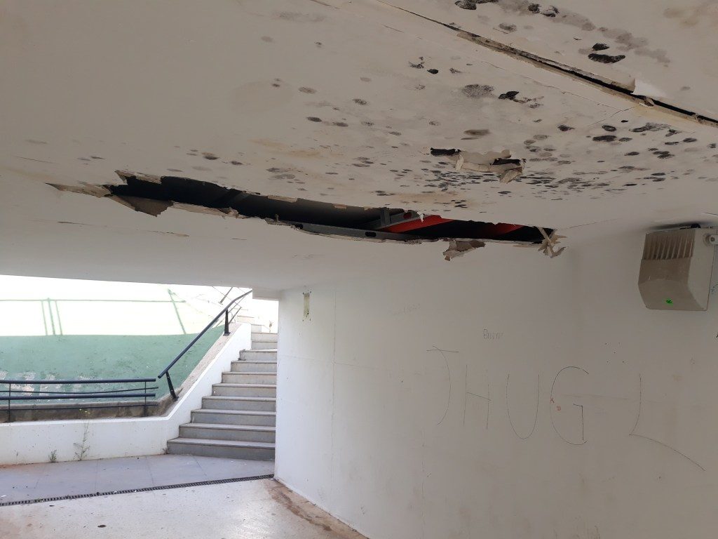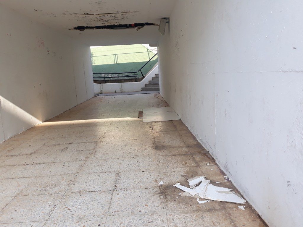 El pasaje subterráneo que da acceso al barrio, por debajo de las vías del metro, según denuncian los vecinos se encuentra sin puntos de luz y algunas de las placas del techo han caído, por lo que los cables están a la vista. Además, los imbornales de las rampas están taponados ante la falta de limpieza.