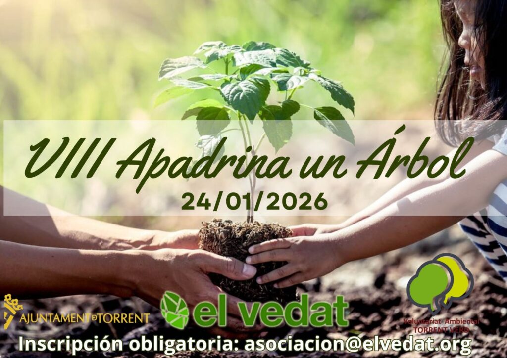 La Asociación de Vecinos El Vedat, en colaboración con el Voluntariat Ambiental Torrent Verd y el Ayuntamiento de Torrent, organiza una nueva edición de la jornada “Apadrina un Árbol”, que tendrá lugar el próximo sábado 24 de enero en El Vedat de Torrent, con motivo de la celebración del Día del Árbol.