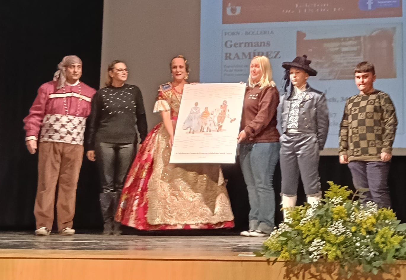 La comisión quiso tener un detalle con la falla barrio del Carmen de Picanya , afectada por la Dana, hicieron entrega de una ilustración que forma parte de la contraportada del Llibret, para colgarlo en su Casal.