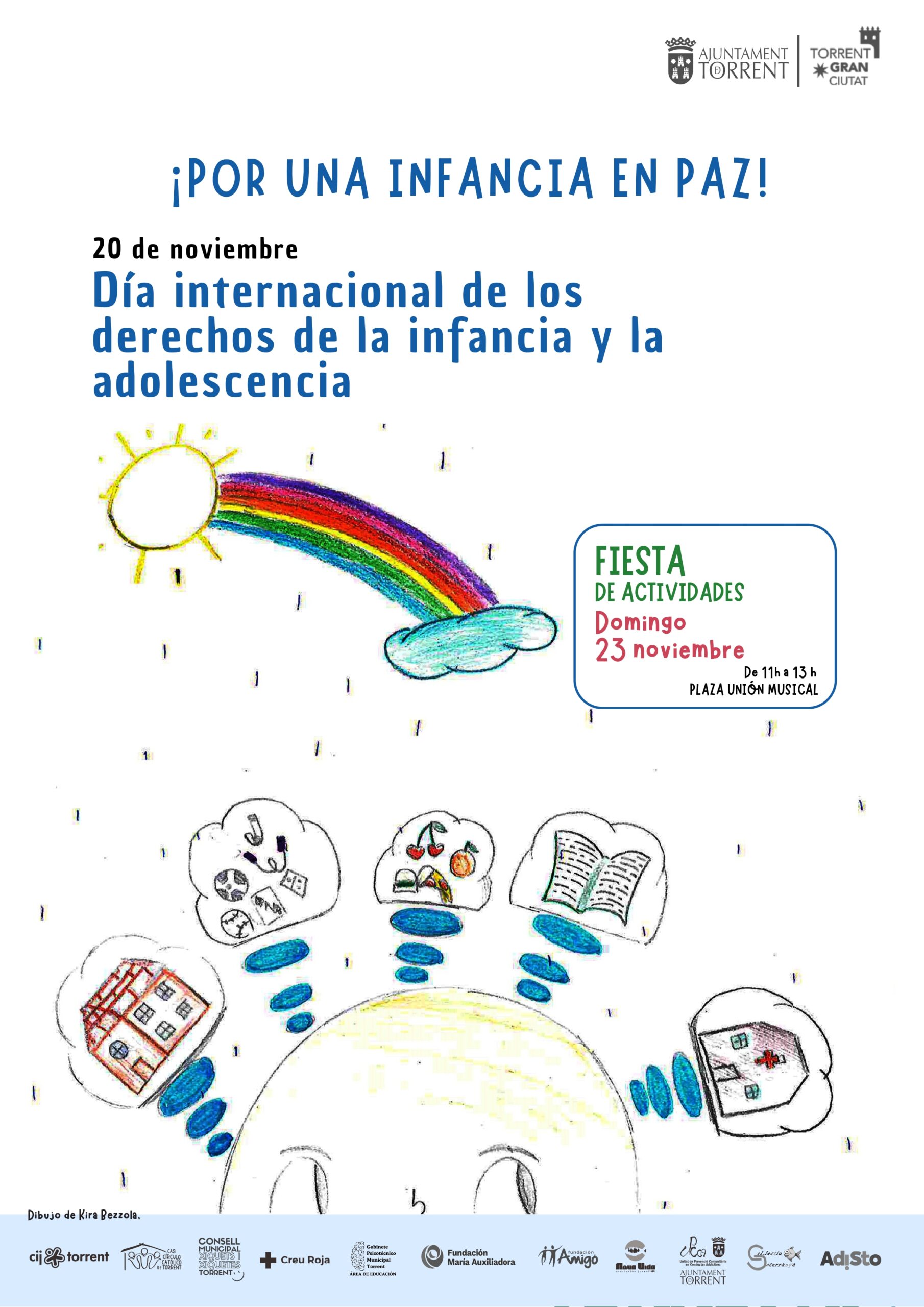 Hoy, 20 de noviembre, Torrent se une al resto de ciudades de todo el mundo para conmemorar, un año más, el Día Mundial de la Infancia, para dar voz a los más pequeños y reivindicar los derechos de los niños. Resulta una fecha significativa por dos hitos importantes en la protección de los derechos infantiles: la adopción de la Declaración de los Derechos del Niño en 1959 y la aprobación de la Convención sobre los Derechos del Niño en 1989. Para celebrar este gran día, la Concejalía de Juventud e Infancia del Ayuntamiento de Torrent ha organizado una jornada llena de actividades el próximo domingo, 23 de noviembre, de 11h a 13h en la Plaza Unión Musical.