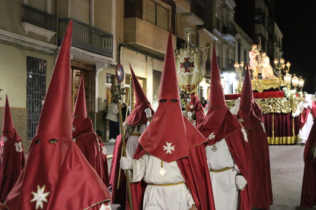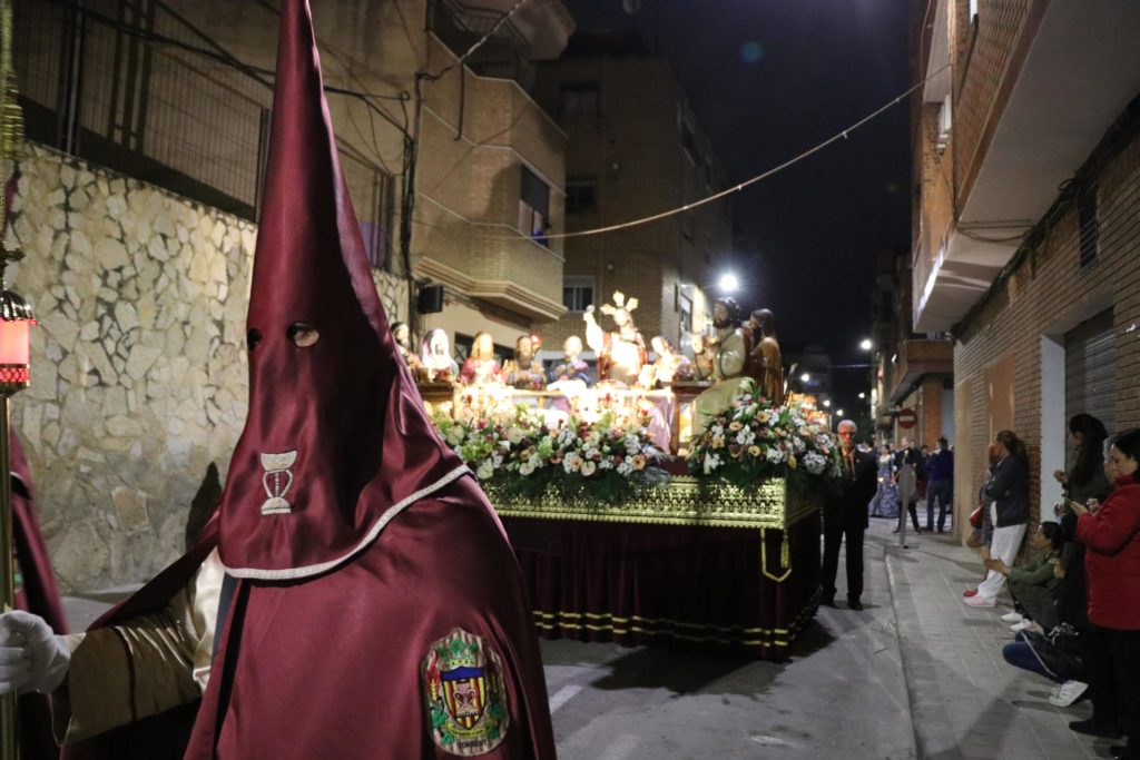 Los traslados y procesiones de las hermandades de Semana Santa comenzaron sus desfiles anoche por las calles de Torrent. Uno de los actos más concurridos del Lunes Santo fue el traslado procesional del paso de la Santa Cena que, como es habitual, recorrió las calles del Poble Nou, barrio en el cual está muy enraizada esta hermandad. Junto a los representantes de la hermandad de la Santa Cena, Jesús Ros y Amparo Folgado y las Reinas del Encuentro de años anteriores, participó María Silla Mora, Reina del Encuentro del 2019.
