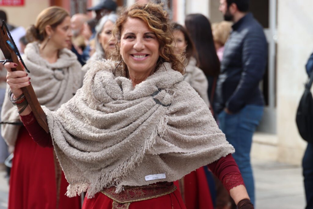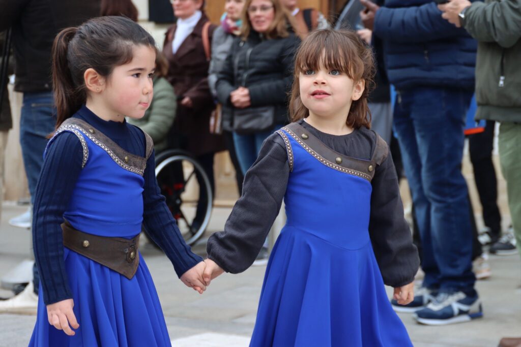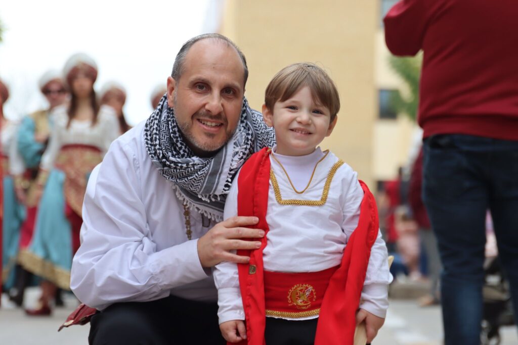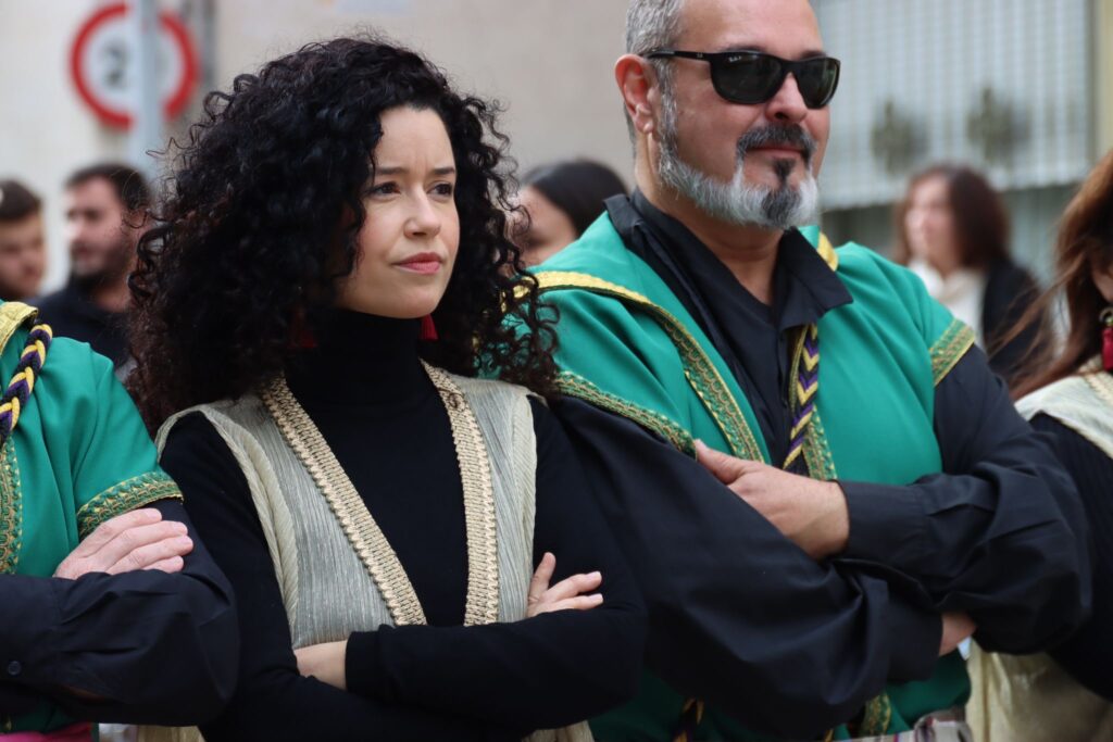 Uno de los momentos más esperados tuvo lugar a los pies de la Torre, con la teatralización del intercambio de cargos festeros. Aunque los nuevos representantes fueron oficialmente nombrados en octubre en el Auditori, este acto simbólico volvió a ponerlos en el centro de atención. Merce Mora, de Ballesteres, asumió el papel de capitana cristiana, mientras que Christian Triguero, de Beduíns, se convirtió en el nuevo capitán moro. Junto a ellos, Pau Bermell, de Sumayl’s, fue presentado como alférez moro, y Julio Palop, de Comilitons, como alférez cristiano.