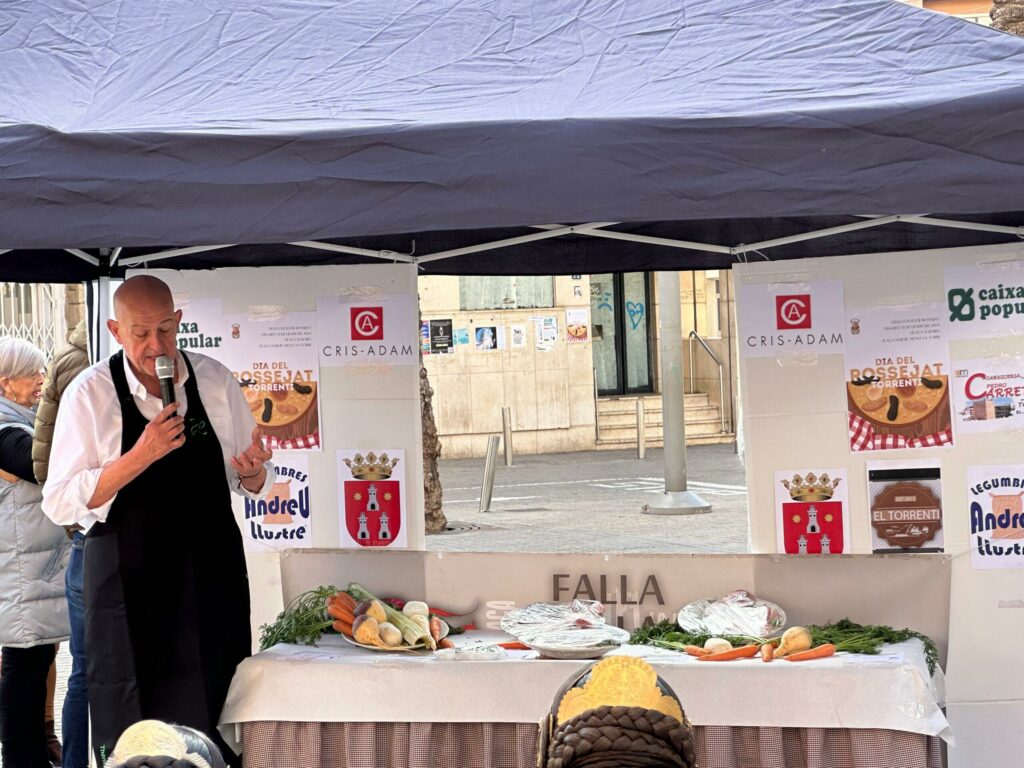 A partir de las 12 del mediodía y hasta las 15 horas, los asistentes podrán disfrutar de un quinto y tapa, acompañados de las actuaciones de grupos que ofrecerán bailes regionales. Sin embargo, el plato fuerte del día será el showcooking del Rossejat Torrentí, un plato típico de la localidad que destaca por su consistencia y sabor. El cocinero y fallero de la comisión, Manolo Carratalà, será el encargado de enseñar a los presentes los secretos de su elaboración en directo. Además, el público podrá degustar este arroz al horno típico de Torrent en forma de tapa, lo que hace del evento una experiencia completa para los amantes de la buena gastronomía.