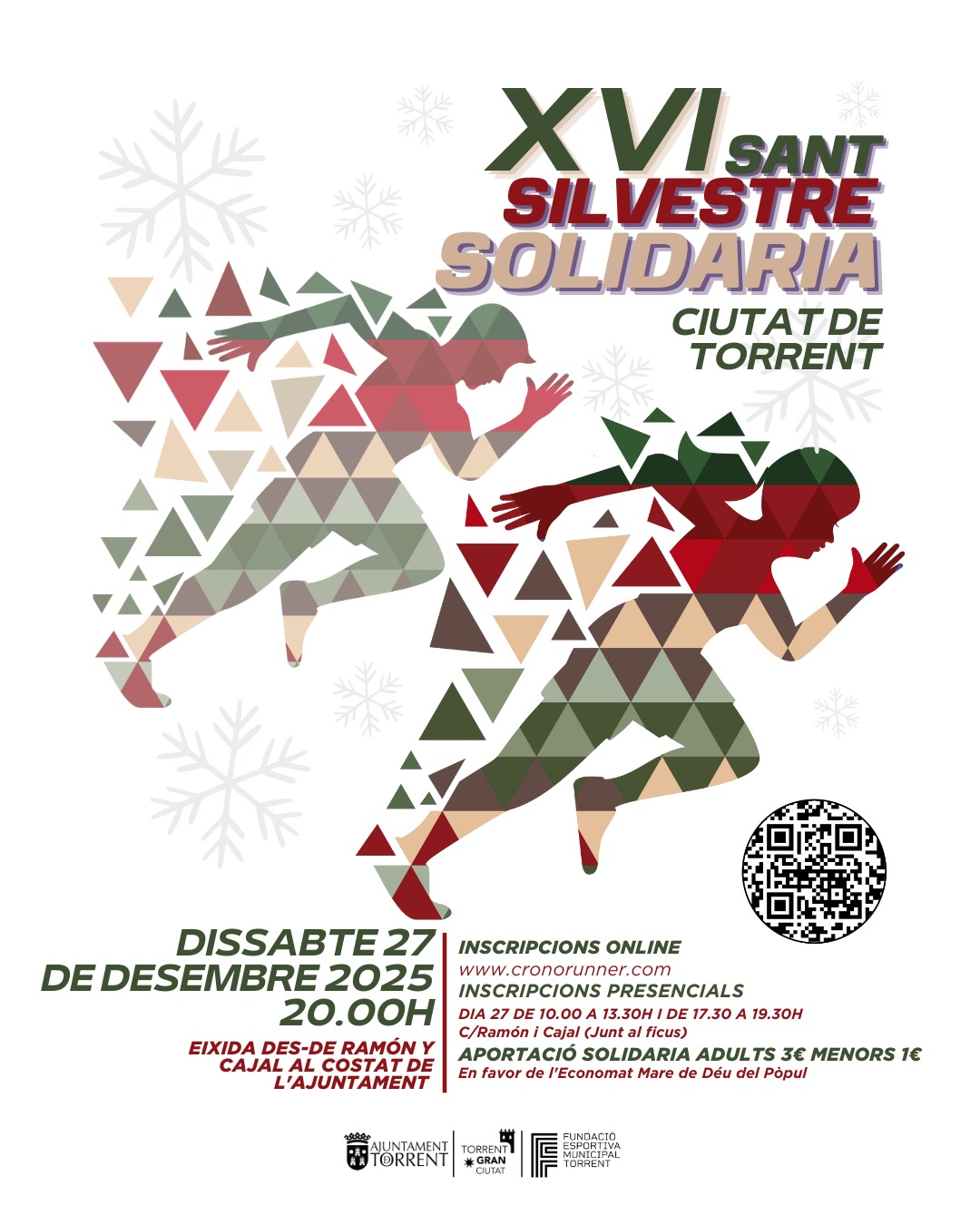 Torrent se prepara para despedir el año con la tradicional XVI San Silvestre Solidaria “Ciutat de Torrent”, organizada por la Fundació Esportiva Municipal de Torrent, que tendrá lugar el sábado 27 de diciembre de 2025, a las 20:00horas, con salida y meta en la calle Ramón y Cajal, a la altura del Ayuntamiento. La prueba está abierta a todas las personas adultas, así como a menores acompañados por su madre, padre o tutor legal.